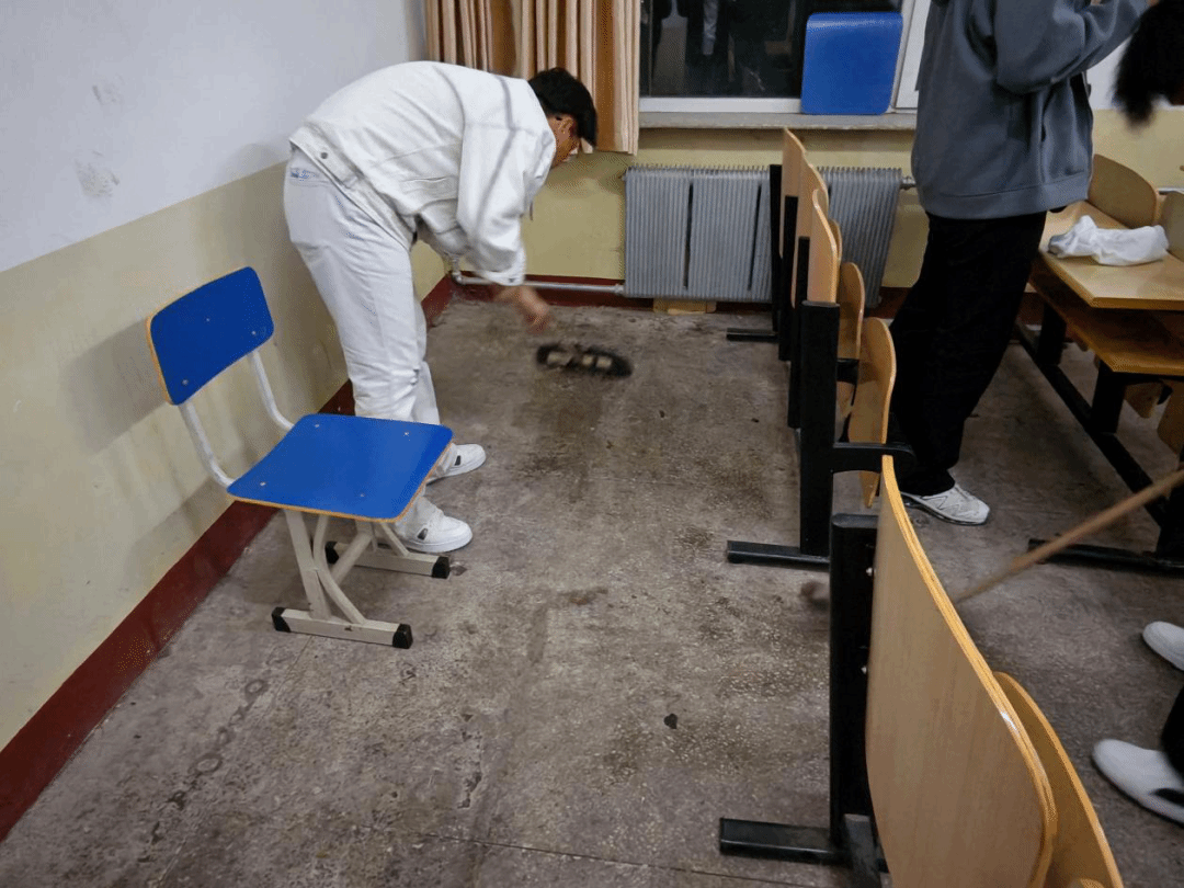 尽管清扫任务细致繁琐,但同学们始终保持积极认真的态度,相互协作、互帮互助。有同学主动帮体力较弱的同伴分担拖地任务,也有同学在完成自身分工后,主动支援其他小组清理卫生死角。“教室是我们共同的学习场所,大家一起动手,不仅打扫得更快,看着干净的环境,心里也特别有成就感。”参与活动的学生在休息间隙说道,言语间满是对集体劳动的认可。
