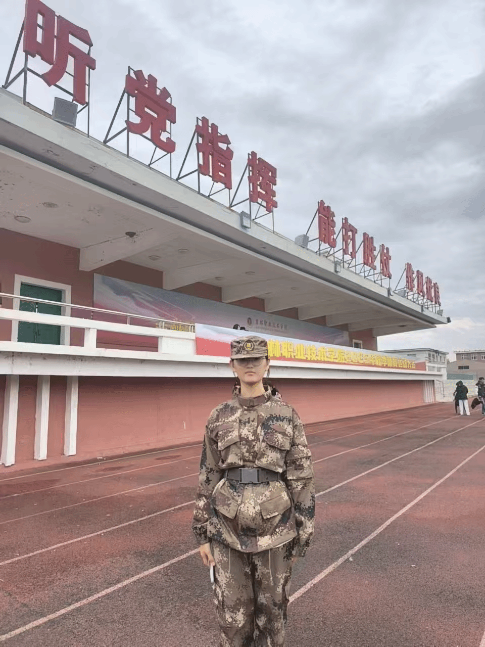 “每个动作都要做到标准,这是对自己的要求,也是对军训的尊重。” 这是刘汇鑫在军训期间常对身边同学说的话。站军姿作为军训的 “入门课”,考验着每一位新生的耐力与专注力。烈日当空时,汗水顺着她的额角滑落,浸湿了迷彩服的肩背,甚至在衣领处凝结成盐渍,她却始终牢记连长 “挺胸、收腹、下颌微收、中指贴裤缝” 的动作要领,脊背挺得笔直,眼神坚定地望向正前方。身旁有同学悄悄调整姿势缓解酸痛时,她依旧保持着标准站姿,直到教官下达 “稍息” 口令,才轻轻活动发麻的双腿,嘴角却带着坚持后的微笑。