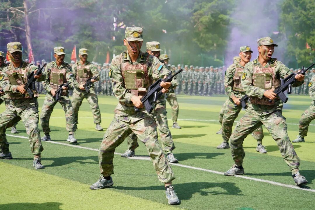 升旗仪式后,2025级新生军训成果汇报正式上演。身着迷彩服的新生们以连队为单位,迈着整齐的步伐、喊着嘹亮的口号依次通过主席台,队列变换精准利落,军体拳表演刚劲有力,充分展现了为期数日军训中锤炼出的纪律意识与团队精神,赢得现场阵阵掌声。
