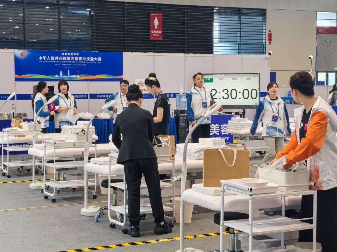 (通讯员 段世娇)第三届职业技能大赛美容(世赛)赛项开赛,我校医药学院参赛选手王兴悦,以 “昼练手法、夜研技艺” 的拼搏姿态,全力攻克面部护理、化妆、美甲等多领域技能难关。从面部护理的细腻手法到光电仪器的精准操作,她在日复一日的高强度训练中打磨技艺,用不怕苦、不怕累的坚守,书写着冲击国赛的信心与决心,誓要在美容赛项舞台上绽放属于自己的光彩。