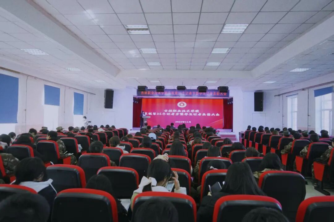 (通讯员 林安桐)金风送爽,笔墨传情。11月10日中午,我校报告厅内暖意融融、掌声阵阵,第26个记者节暨学生记者表彰大会在此隆重召开。大会旨在表彰先进、凝聚力量,激励全校学生记者坚守初心、深耕创作,持续讲好吉职故事、传播吉职声音。