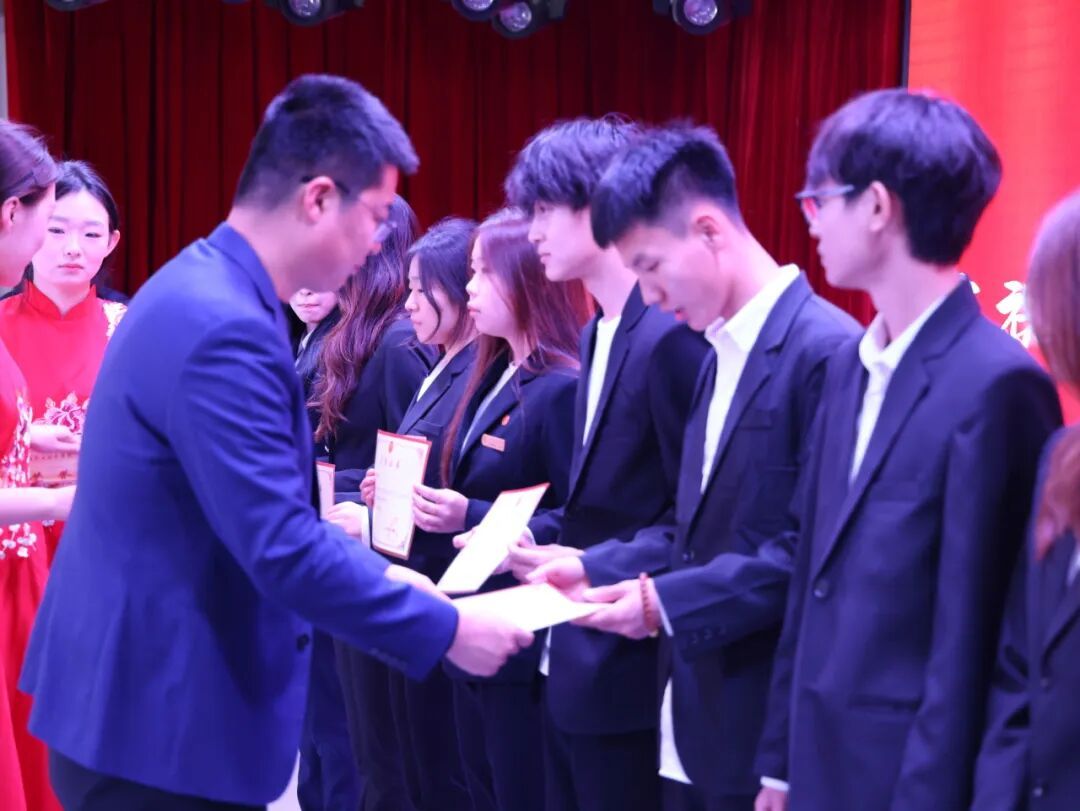 在激昂的音乐与热烈的掌声中,与会领导和老师为获奖学生颁发荣誉证书。手持鲜红证书的同学们脸上洋溢着自豪的笑容,台下师生纷纷用掌声为他们喝彩,报告厅内的氛围达到高潮。