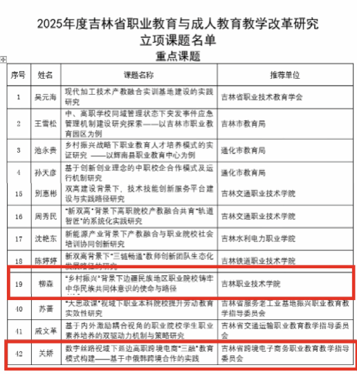 喜报:我校在2025年度吉林省职业教育与成人教育教学改革研究课题评审中喜获佳绩
